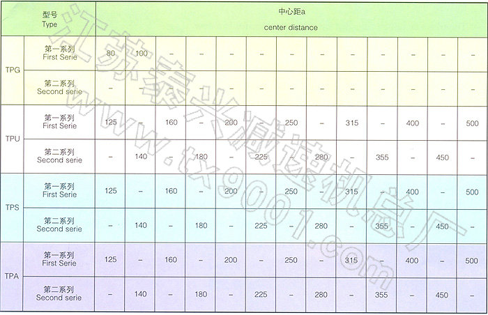 该减速器系列有四种型式:TPG、TPU、TPA、TPS.其中:TP-平面包络环面蜗杆组合为