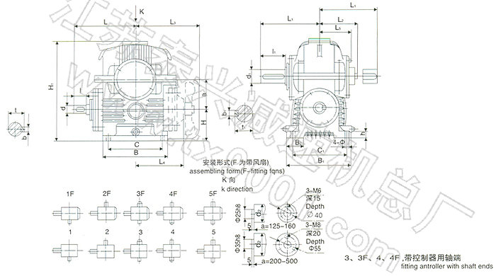 A:TPG-通用型平面包络环面蜗杆减速器、蜗杆可在蜗轮之上、之下、水平之侧或垂直在侧。