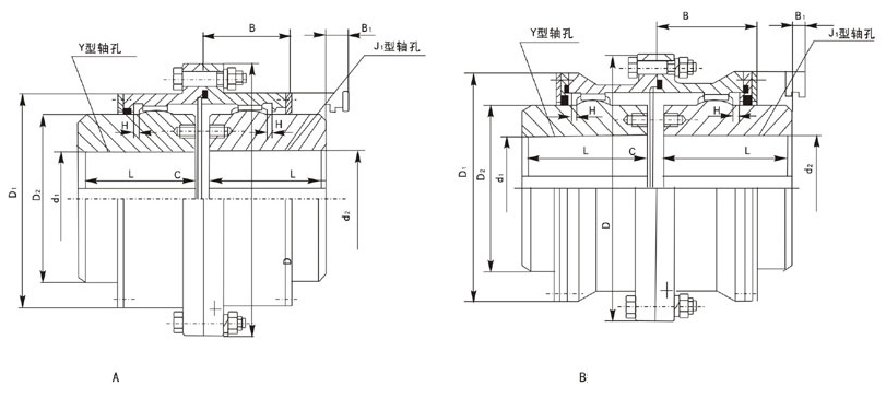 轴孔长度 | D | D1 | D2 | C | H | B | B1 |
