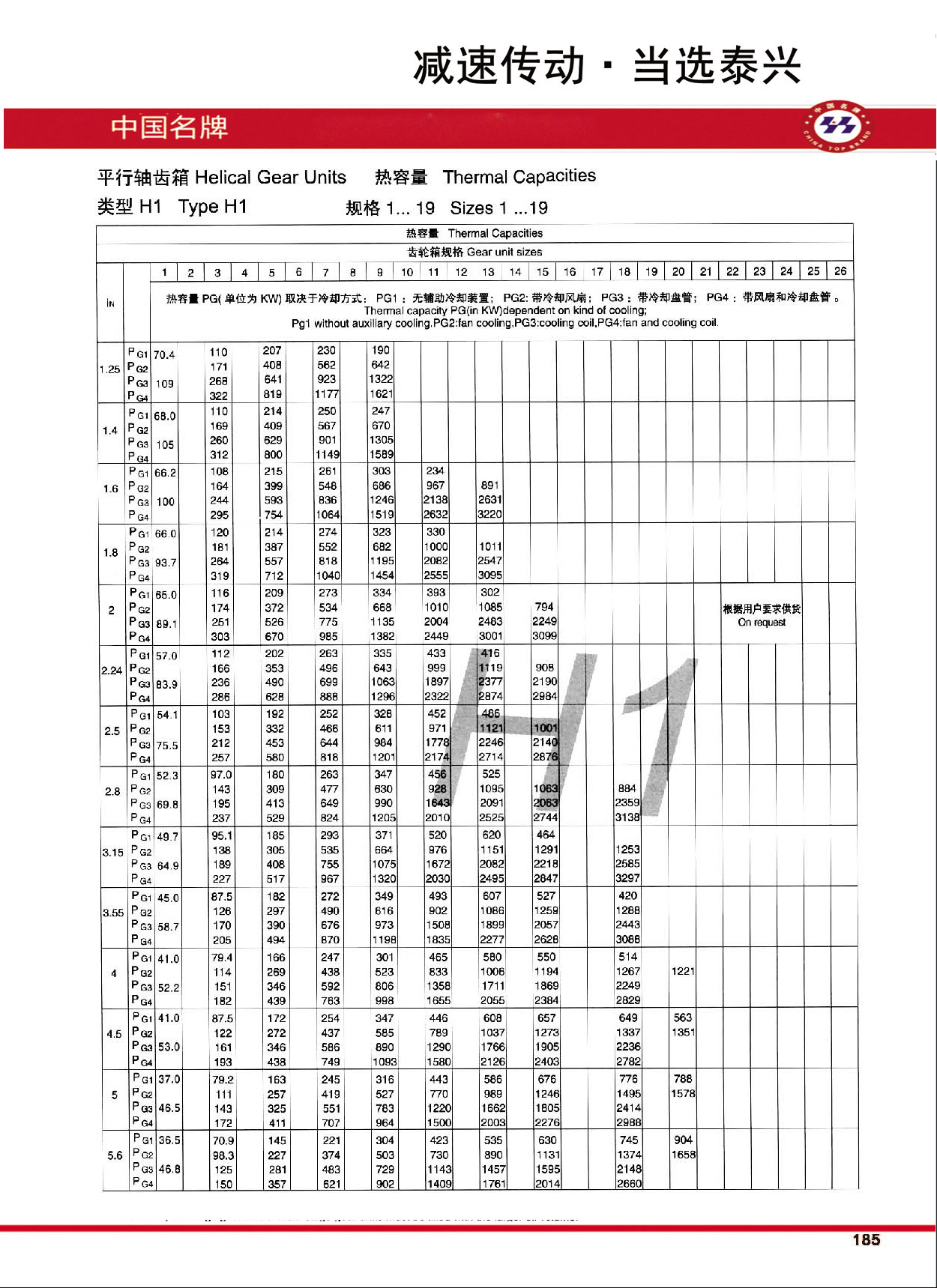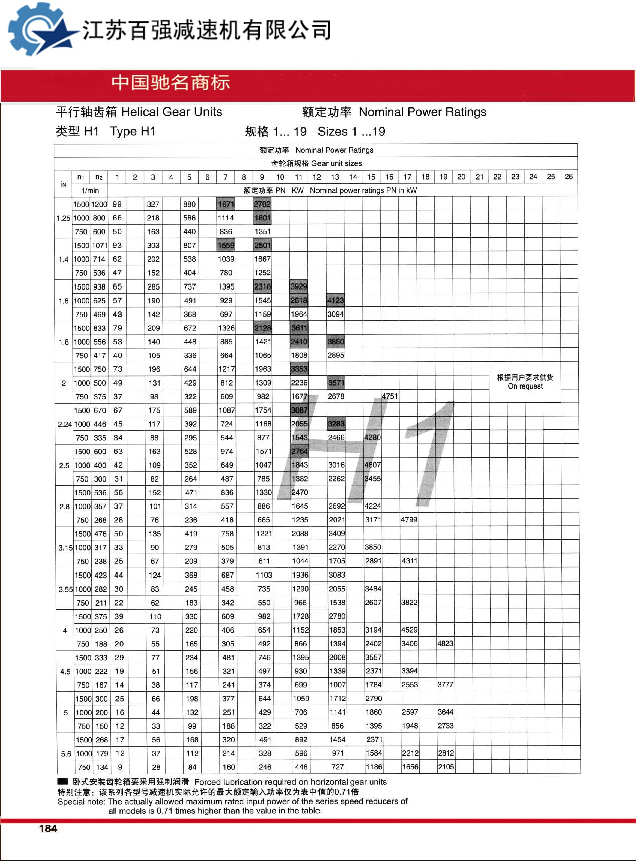 7、 H、B系列产品有3~26型规格,减速传动级数有1~4级,速比1.25~450。