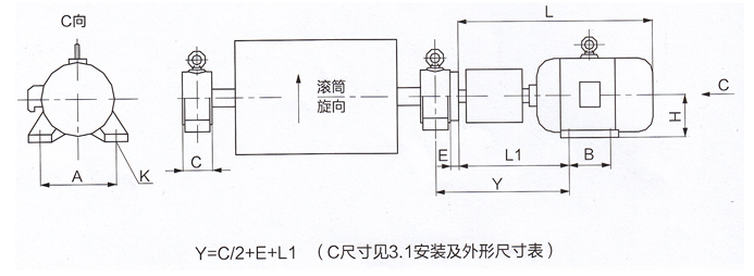 1.逆止型的滚筒选型与本厂标准不同时,需在订货时注明,站在电机尾部看,电动滚筒的旋转方向。 2.YTH-III型滚筒中,按电机安装形式不同分四种形式,需在订货时注明。