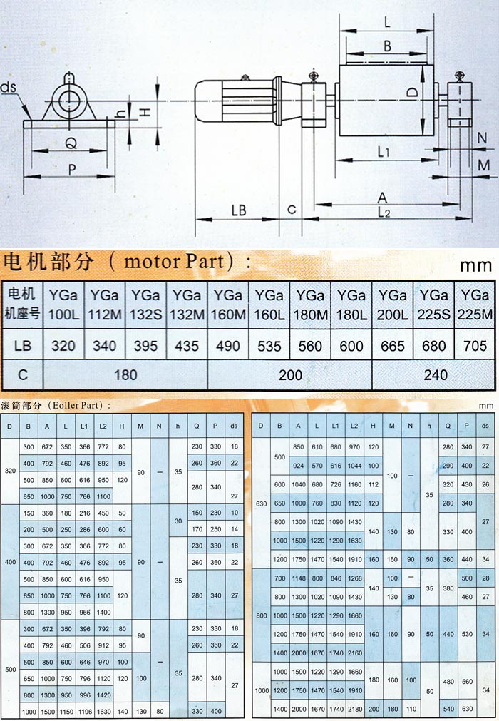JWD2型外装式电动滚筒参数: