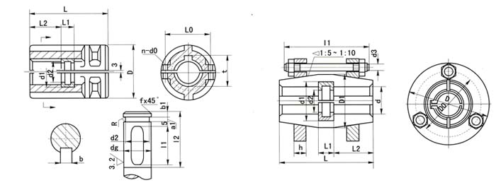 1、JQ、JQW型夹壳联轴器主要尺寸