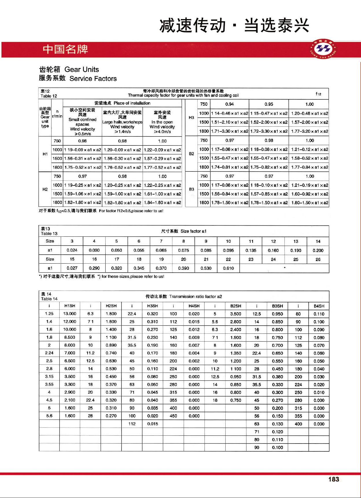 7、 H、B系列产品有3~26型规格,减速传动级数有1~4级,速比1.25~450。