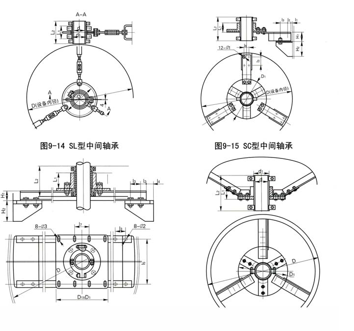 注:重量仅供参考,与设备内径D有关,SD适用于中间轴承位置高度在上封头范围的情况,用户提高高度位置及封头图形,本公司可以供应定位杆拉杆构件。