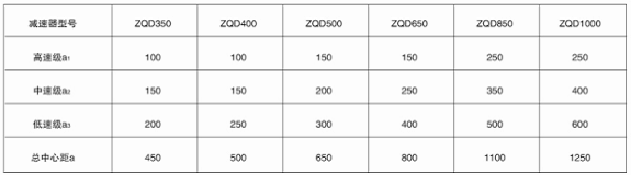 中心距 ZQD型减速机的名义中心距为中、低速级中心距之和;