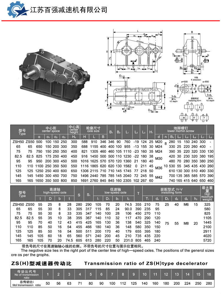 江苏重泰减速机有限公司是ZS(H)二级传动圆柱齿轮减速机的专业生产厂家 为您提供ZS减速机,ZH减速机系列价格、参数、原理、安装尺寸等...