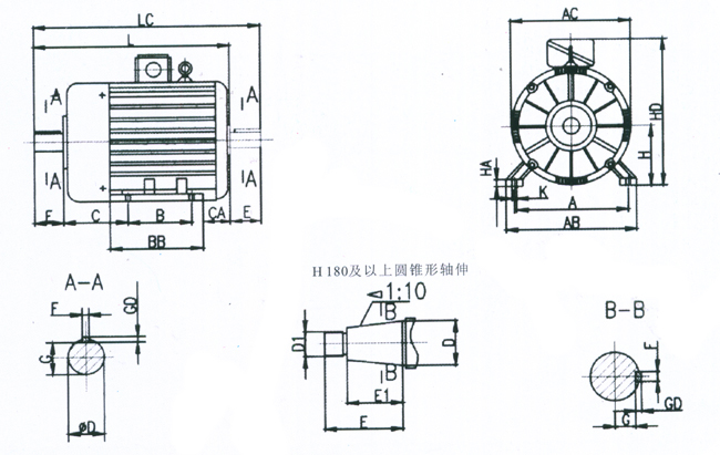 一、YZ112-250 IM1安装尺寸与外形尺寸